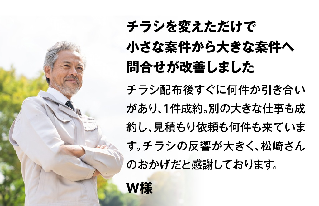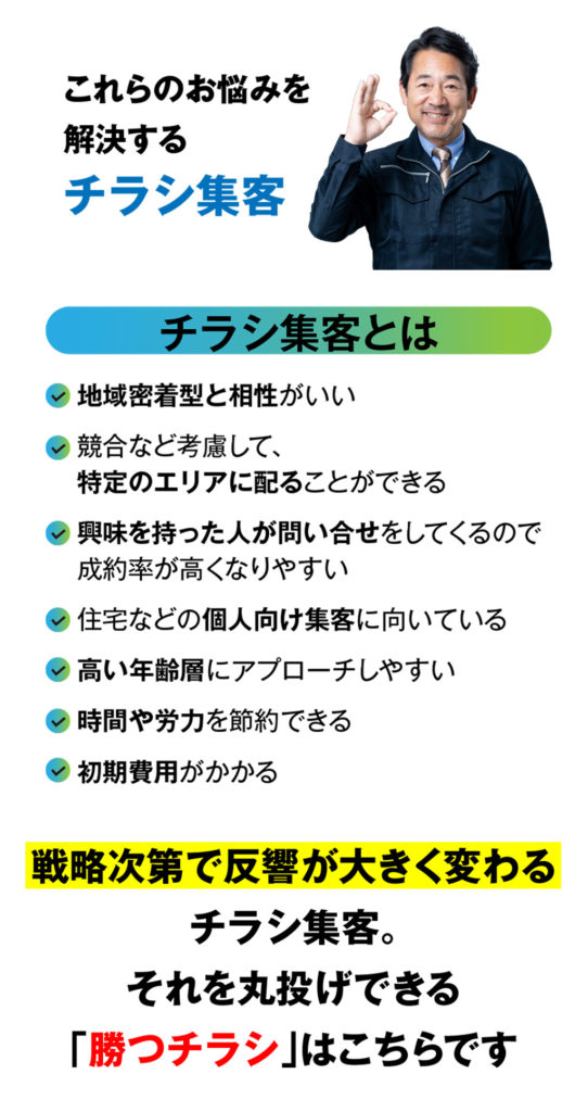 はい、大丈夫です! 初回の無料相談でお話を伺い、どんなチラシが最適なのか訴求ポイントを考えていきます。また、キャッチコピー・原稿制作・デザイン全てをワンストップで対応しますので、安心してご依頼いただけます